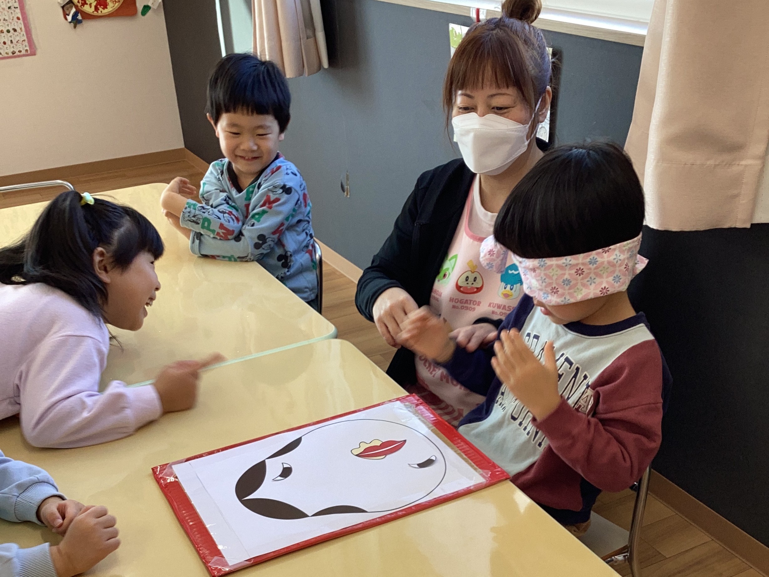 新年あけましておめでとうございます。 新しい年を迎え、2026年も元気にスタートした石川かめっこ保育園です😊 お正月遊びでは、『福笑い』に挑戦!!! 目隠しをして、目や鼻や口などのパーツを上手に置けるかな?🤭 まわりのお