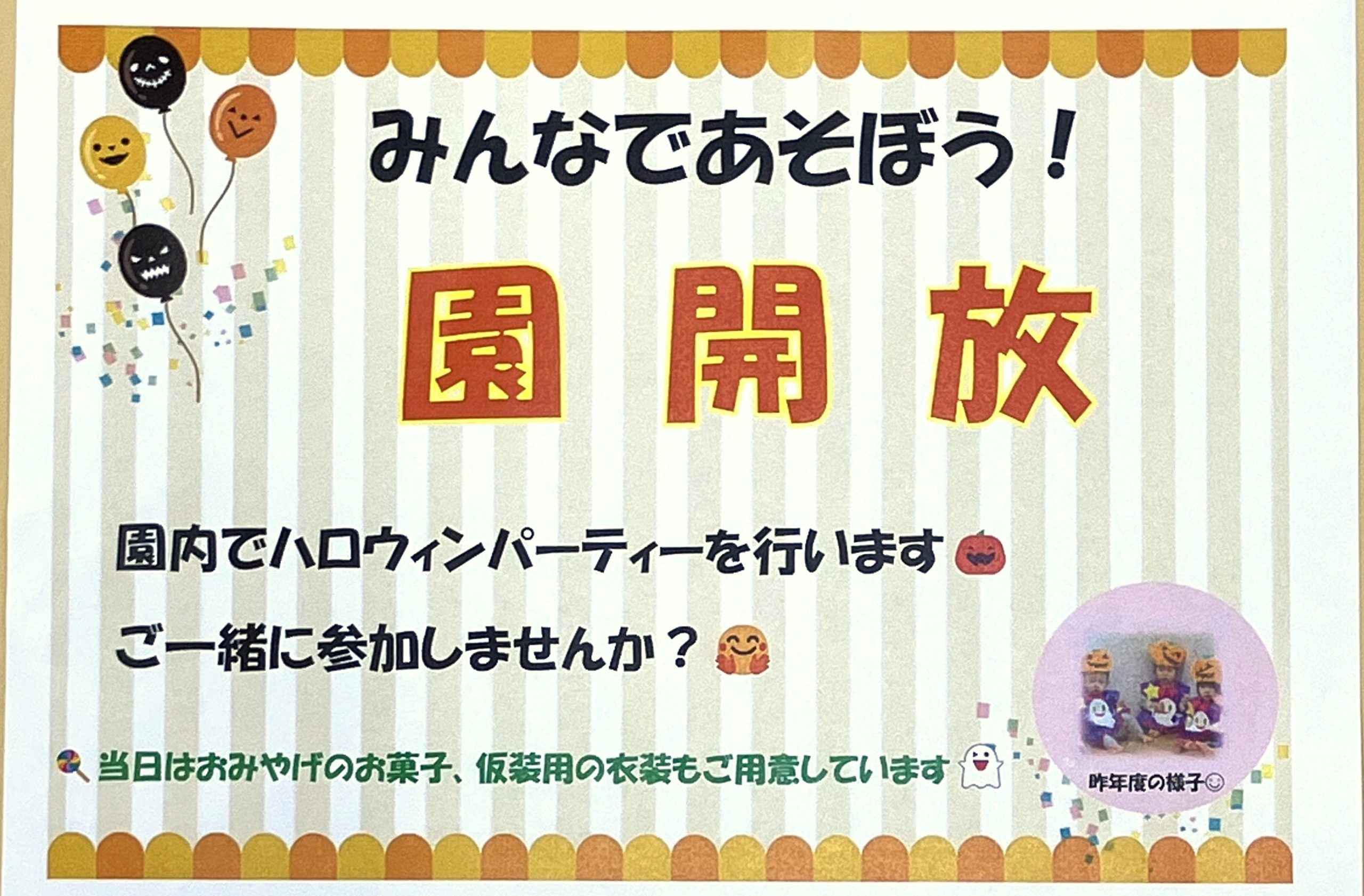 10月27日(月)石川かめっこ保育園にて、園開放を実施いたします🤗 保育園ではどんなことをしているのかな?保育園の中はどうなっているかな?と、初めての保育園だと気になることも色々あると思います💡 園開放では、保育園の見学