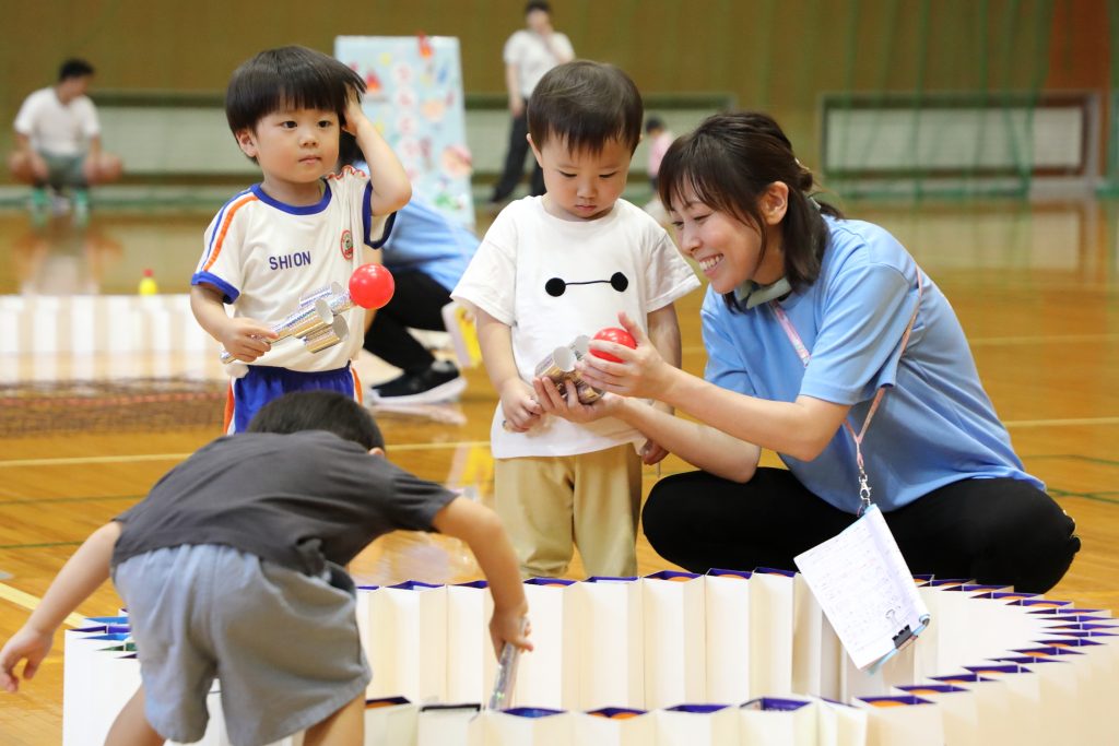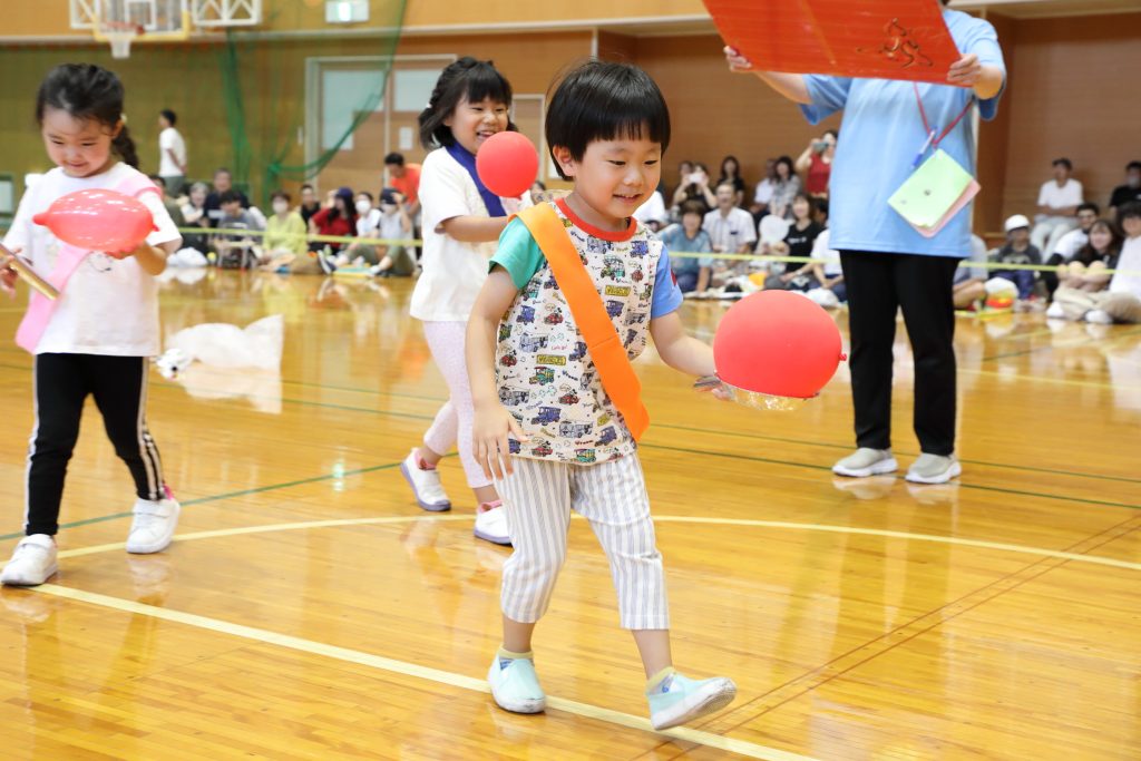 きりん・らいおん組さんは風神雷神の風が吹く中、風船を落とさずにゴールできるかな🎈🤗
