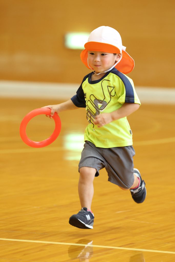 次はあひる組・うさぎ組・ぱんだ組・きりん組・らいおん組さんの障害物競争『石川かめりんピック』です🙋
