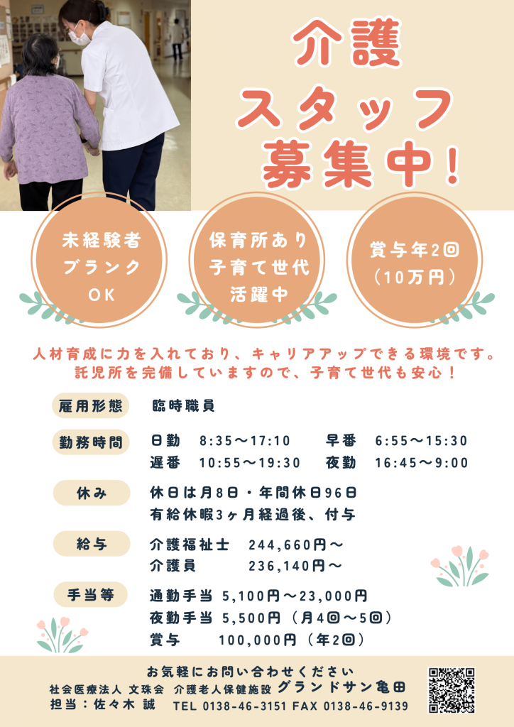私たちと一緒に、グランドサン亀田で働いてみませんか?