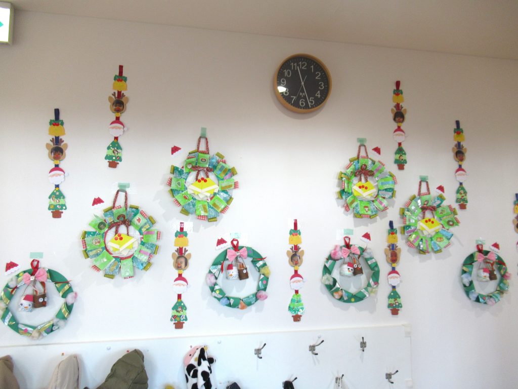 園内には、各クラスでクリスマスに向けた製作を行い、完成した作品がたくさん飾られています🎀